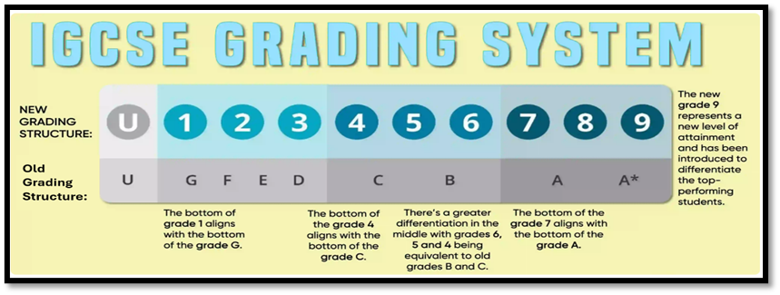 iGCSE results are reported using a 1–9 grading scale:
